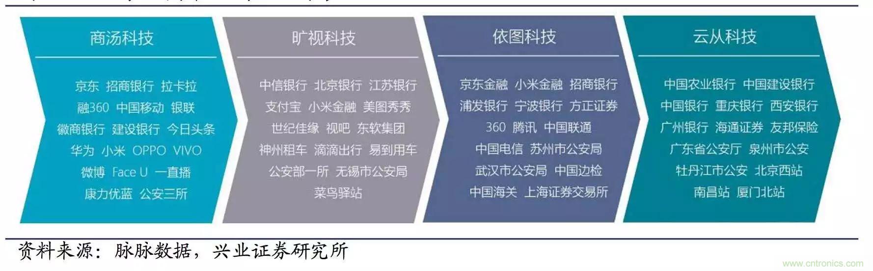 人臉識別在眾多領域遍地開花已經(jīng)是大勢所趨,四家獨角獸公司在應用方面的布局也有所側(cè)重,他們各自憑借先進的技術,在各自擅長的領域進行深度布局,積累了豐富的客戶資源。商湯科技側(cè)重在金融、安防、移動互聯(lián)網(wǎng)和手機領域;依圖科技側(cè)重在金融、安防、醫(yī)療和交通領域;曠視科技側(cè)重在金融、安防、零售、出行等領域;云從科技側(cè)重在金融、安防、酒店,以及其他創(chuàng)新領域。