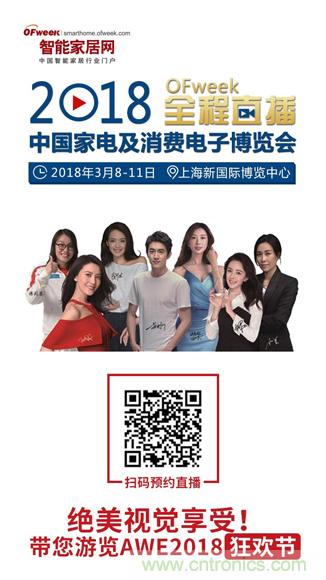 【導(dǎo)讀】OFweek智能家居網(wǎng)小編和林志玲、那英、楊冪、林更新等一線明星,都在2018中國家電及消費(fèi)電子博覽會(huì)全程直播http://live.ofweek.com/live/116等著你!