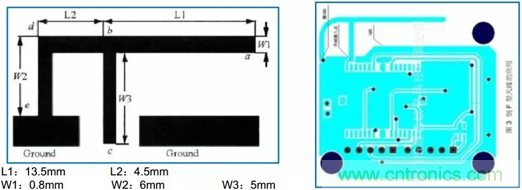 圖1:倒F型天線設(shè)計(jì)示意圖
