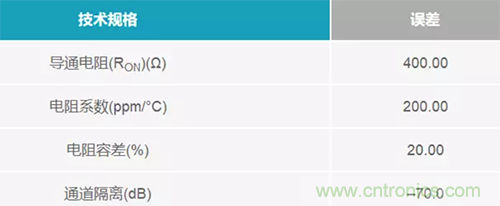 表2. 多路復用器的各種誤差