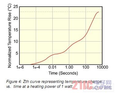在電子行業(yè),術(shù)語“Z”代表阻抗,在我們的例子中代表熱阻抗。在熱阻抗的曲線中,其表示溫差除以熱功耗的值。因此,圖4中的Z曲線表述了對于1W熱功耗的溫度改變。