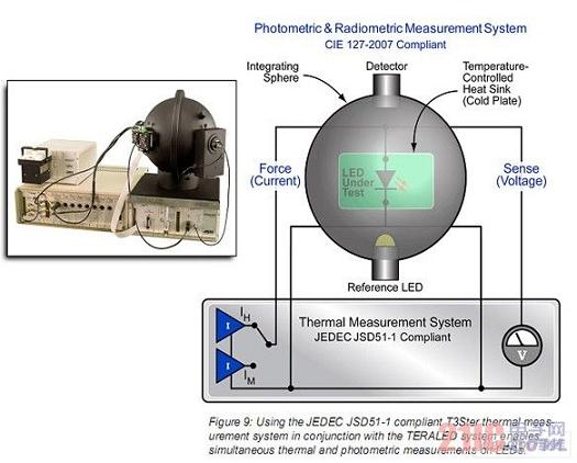 當(dāng)TERALED以單機模式使用時,它可以完成光度測量。當(dāng)結(jié)合T3Ster系統(tǒng)時可以進行熱和光度測量。圖9是TERALED和T3Ster系統(tǒng)一起使用的簡圖。