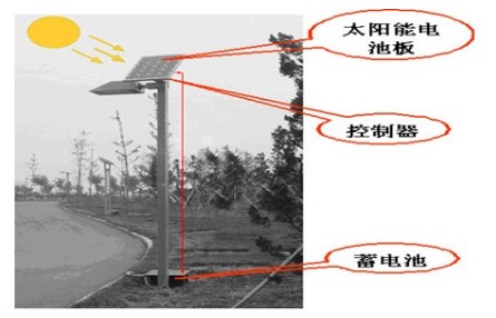 LED太陽能草坪燈是一個(gè)小型的太陽能供電系統(tǒng)(圖3是一個(gè)簡(jiǎn)單的太陽能供電系統(tǒng))。它的結(jié)構(gòu)非常簡(jiǎn)單主要由太陽能電池板、充放電控制器、蓄電池、照明電路和燈桿等部分組成(如圖4)。