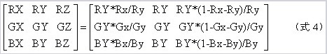 白色由RGB三原色混色而成,因此,如給出RGB三色的亮度值RY,GY,BY,就可以計算出RGB三色各自的三刺激值。
