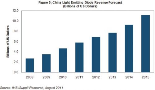 在政府支持下和新應(yīng)用的帶動(dòng)下,2011年中國(guó)LED市場(chǎng)將從去年的47億美元增長(zhǎng)到58億美元,上升23%。