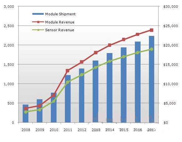 2011年的觸摸面板因智能手機市場的增長而“風(fēng)光無限”。據(jù)美國FPD相關(guān)調(diào)查公司DisplaySearch預(yù)測,2011年全球智能手機面板市場與上年相比將實現(xiàn)90%以上的迅猛增長,并且預(yù)測在2015年之前還將以年均43%的速度增長。由于智能手機市場迅猛增長,輸入和操作所需的觸摸面板市場隨之迅速擴大。據(jù)DisplaySearch介紹,觸摸面板的整體市場規(guī)模2011年達到了12億片,超過130億美元。預(yù)計按數(shù)量計算將比上年大幅增長60%,按金額計算將大幅增長90%(圖1)。