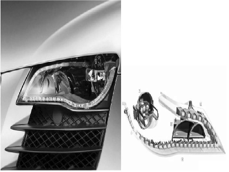 因此,為提高行車安全,越來越多的新技術(shù)被逐漸應(yīng)用到汽車燈具中,如側(cè)轉(zhuǎn)向燈的光纖傳導(dǎo)技術(shù)、前照燈AFS 技術(shù)等。當(dāng)然,這其中也包括發(fā)光二極管技術(shù)( Light Emitting Diode,簡稱LED) 在汽車燈具尤其是在汽車前照燈上的應(yīng)用。近幾年的汽車設(shè)計(jì)中,LED 車燈的使用越來越多,給汽車外觀增加現(xiàn)代感的同時(shí),也為更多人所熟悉,并引領(lǐng)當(dāng)今汽車燈具發(fā)展的潮流和方向。