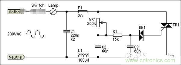 前沿切相調(diào)光器電路比較簡(jiǎn)單,一般都包含一個(gè)DIAC(雙向觸發(fā)二極管),一個(gè)TRIAC(可控硅,因此也叫可控硅調(diào)光器)。