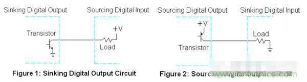這里有必要提一下控制里常會(huì)提到的 Sinking(灌電流)和Sourcing (拉電流)的概念。借用一下數(shù)字控制里面的兩張圖說(shuō)話: