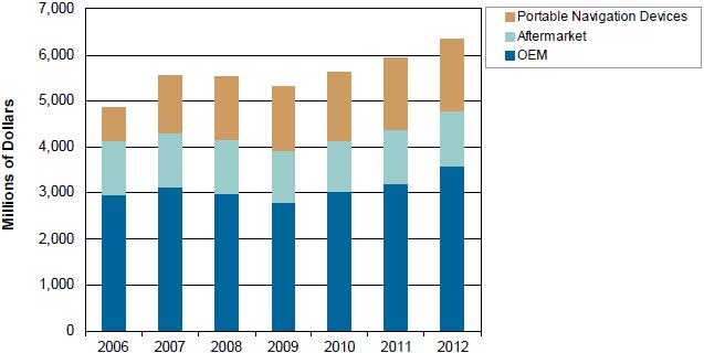 - 預(yù)計(jì)低成本in-dash導(dǎo)航儀將促進(jìn)各類汽車導(dǎo)航設(shè)備配售率從2007年時(shí)的15%上升到2012年的25%