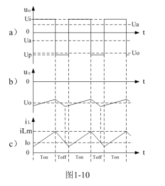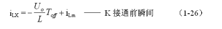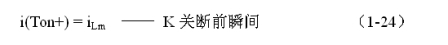 式中i(Ton+)為控制開關(guān)K從Ton轉(zhuǎn)換到Toff的瞬間之前流過電感的電流,i(Ton+)也可以寫為i(Toff-),即:控制開關(guān)K關(guān)斷或接通瞬間,之前和之后流過電感L的電流相等。實際上(1-23)式中的i(Ton+)就是(1-21)式中的iLm,即: