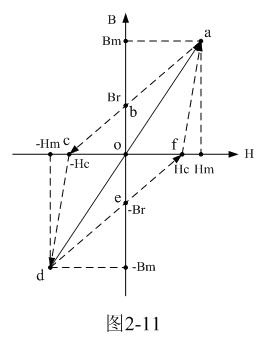 在圖2-11中,直線d-o-a是變壓器鐵芯的理想磁化曲線;當(dāng)輸入電壓為交流的時候,磁通密度是從負(fù)的最大值- Bm到正的最大值Bm之間來回變化。