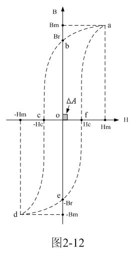 由(2-24)式很容易看出,虛線a-b-c-d-e-f-a圈起來的面積所對應(yīng)的就是磁滯損耗的能量;即:磁滯損耗能量的大小與磁滯回線的面積成正比。