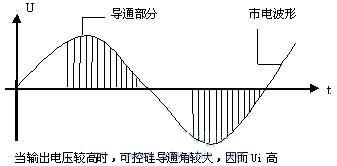 可控硅是一個(gè)控制電壓的器件,由于可控硅的導(dǎo)通角是可以用電路來(lái)控制的,固此隨著輸出電壓Uo的大小變化,可控硅的導(dǎo)通角也隨著變化。加在主變壓器初級(jí)的電壓Ui也隨之變化。