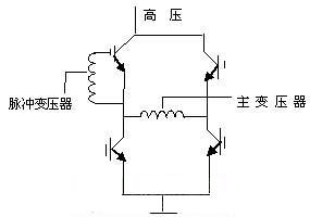 由電路可以看出,市電經(jīng)整流濾波后變?yōu)?11V高壓,經(jīng)K1~K4功率開(kāi)關(guān)管有序工作后,變?yōu)槊}沖信號(hào)加至高頻變壓器的初級(jí),脈沖的高度始終為311V。當(dāng)K1,K4開(kāi)通時(shí),311V高壓電流經(jīng)K1正向流入主變壓器初級(jí),經(jīng)K4流出,在變壓器初級(jí)形成一個(gè)正向脈沖。