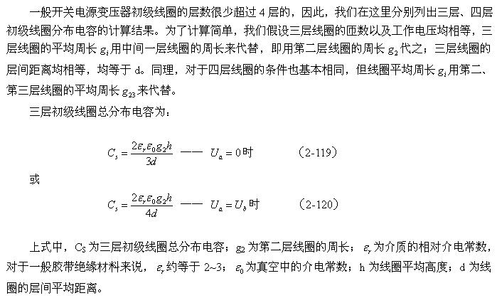 [page]由此可以求得變壓器初級(jí)或次級(jí)兩層線圈之間分布電容的表達(dá)式: