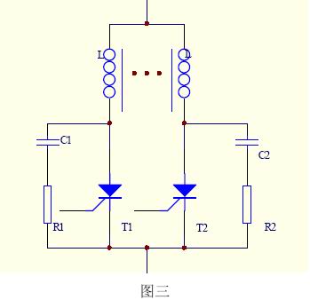 通常采取的辦法是:1)采用共軛電感,以保證動(dòng)態(tài)均流;2)并聯(lián)RC電路以吸收浪涌電壓;3)盡量選用通態(tài)壓降一致的晶閘管并聯(lián)工作;4)嚴(yán)格安裝工藝,保證各支路分布電感盡量一致,如圖三所示