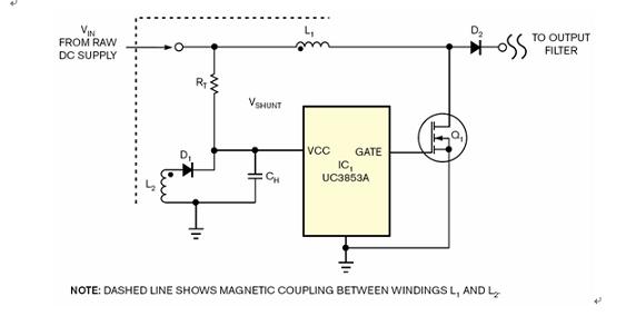 這個(gè)電路如同圖1所示,其中的二極管D2和輔助線圈L2會(huì)提供正常操作電源給IC1。