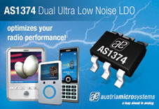 奧地利微電子的AS1374工作電壓為2-5.5V,適合便攜式電池供電應(yīng)用。AS1374為匹配低成本、小容量陶瓷電容而優(yōu)化和設(shè)計,每路輸出為200mA負(fù)載電流時提供120mV的低電壓降。AS1374可提供1.2V至3.6V的預(yù)編程輸出電壓(編程步長為50mV)。該器件采用先進(jìn)的架構(gòu),以實現(xiàn)20μVRMS的超低輸出電壓噪聲和優(yōu)于85dB(在1kHz時)的電源抑制比。2個高電平有效使能引腳可以獨立開啟或關(guān)閉每路輸出。