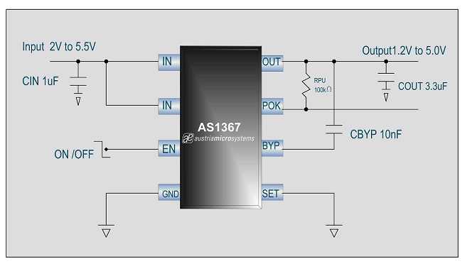 中國——全球領(lǐng)先的通信、工業(yè)、醫(yī)療和汽車領(lǐng)域模擬集成電路設(shè)計(jì)者及制造商奧地利微電子公司(SWX 股票代碼:AMS)擴(kuò)展旗下低壓差穩(wěn)壓器產(chǎn)品線,推出“Eco”LDO AS1367,在穩(wěn)壓輸出時(shí)可提供高達(dá)150mA的電流。