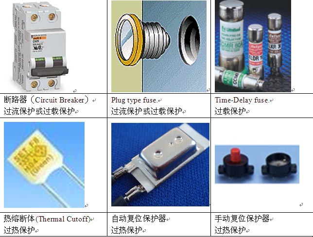 (1) 使用馬達(dá)裝入式熱保護(hù)器,符合CSA標(biāo)準(zhǔn)C22.2 No.77 Motor with Inherent Overheating Protection. 這些馬達(dá)過熱保護(hù)器如上表所列,使用時需要注意,保護(hù)器不能只響應(yīng)馬達(dá)的電流,還需要有適當(dāng)?shù)念~定工作電壓,電流值與溫度預(yù)定保護(hù)值,而且熱保護(hù)器需要適用于馬達(dá)。標(biāo)準(zhǔn)要求的測試有Running Heating Temperature test, Locked-Rotor Temperature test and Locked-Rotor Endurance test. 如果馬達(dá)符合這本標(biāo)準(zhǔn),就可以標(biāo)上 “THERMALLY PROTECTED” (熱保護(hù)馬達(dá))。也就是說,當(dāng)馬達(dá)符合整機(jī)電器的標(biāo)準(zhǔn)CSA68與馬達(dá)標(biāo)準(zhǔn)CSA77,馬達(dá)在正常工作額定負(fù)載(Rating),過載(Running Heating)以及堵轉(zhuǎn)(Locked-Rotor)的應(yīng)用條件下都符合標(biāo)準(zhǔn)要求,馬達(dá)得到了過熱保護(hù)。
