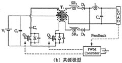 另外,如圖3所示,在采用絕緣變壓器的場合,研究人員還提出了將有源鉗位電路嵌入推挽式轉(zhuǎn)換器中的方案,可在采用48V輸入和1.2V/70A輸出的條件下實現(xiàn)高達91%的效率。上面講到的幾種電路方式基本上都是一段式結(jié)構(gòu),最近,出于進一步提高效率的考慮,人們正在加緊研發(fā)兩段式結(jié)構(gòu)的轉(zhuǎn)換器。就普通的轉(zhuǎn)換器而言,采用兩段式結(jié)構(gòu)將導致效率下降是人所共知的常識,然而,在低電壓大電流轉(zhuǎn)換器中,對輸出進行同步整流是很普遍的做法,因此,如何實現(xiàn)同步整流操作的高效化便成為了關(guān)鍵所在。