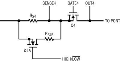 當(dāng)Q4B關(guān)閉的時(shí)候,端口工作在符合802.3af標(biāo)準(zhǔn)的模式。打開Q4B開關(guān),端口就工作在大電流模式。這種切換可以在任何時(shí)間進(jìn)行:在檢測(cè)/分類之前;在檢測(cè)/分類之后,但是要在端口上電之前;或在供電之后。注意,Q4B可以采用低壓MOSFET,因?yàn)閮H僅Q4的漏極具有高端口電壓。Q4B要選擇導(dǎo)通電阻非常低的MOSFET,以防止在更大電流限制中精度不夠。例如,IRLML2502就是采用SOT-23封裝的一種合適的器件。