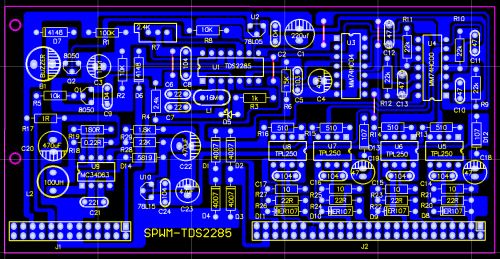 1.SPWM的驅(qū)動核心采用了單片機SPWM芯片,TDS2285,所以,SPWM驅(qū)動部分相對純硬件來講,比較簡單,制作完成后要調(diào)試的東西很少,所以,比較容易成功。