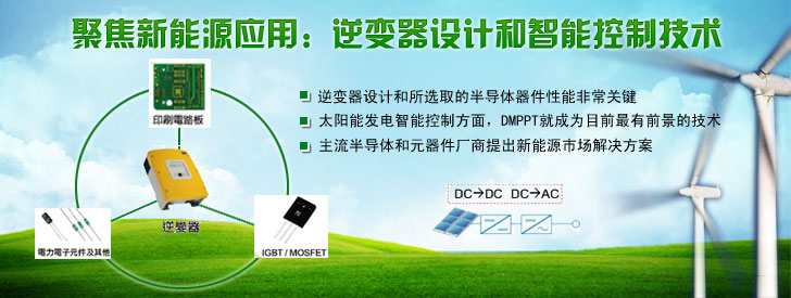 太陽能發(fā)電系統(tǒng)對半導(dǎo)體器件有什么樣的要求?這篇文章可以告訴大家。A/D轉(zhuǎn)換器、整流器、IGBT模塊、驅(qū)動、傳感、MCU以及電容等元器件廠商都有望在新得市場上獲得契機(jī)。這些器件中,最重要的是逆變器,它的任務(wù)是把光伏單元可變的直流電壓輸出轉(zhuǎn)換為清潔的50Hz或60Hz的正弦電壓源,為了保證輸出電壓的穩(wěn)定,需要一系列器件的配合,例如傳感器來跟蹤太陽方位角、A/D轉(zhuǎn)換器來實(shí)現(xiàn)數(shù)據(jù)轉(zhuǎn)換,MCU來實(shí)現(xiàn)穩(wěn)定輸出的算法……那么主流半導(dǎo)體和元器件廠商是如何針對新能源市場打造解決方案的?我們將業(yè)界的趨勢和熱點(diǎn)作一次總結(jié),希望對讀者提供一定參考。