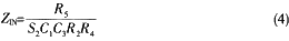 如果把Z4變換為阻抗為1/SC(其中S=jω)的虛擬元件,其它元件為電阻,則驅(qū)動點的阻抗為: