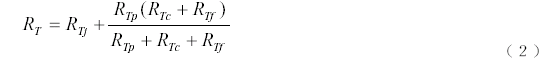 式中,Δt 為功率管結(jié)溫與周圍環(huán)境溫度之差,℃;RT 為總熱阻,℃/W;