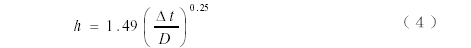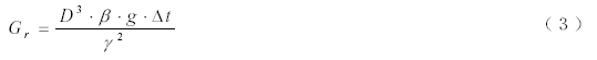 代入數(shù)據(jù)得Gr=1.1673╳10-7,而普朗特?cái)?shù)Pr=0.7085,故Pr× Gr=8.2703╳105,在1╳104~1╳109 之間,判斷流態(tài)為層流。相應(yīng)的對流換熱系數(shù)計(jì)算公式為