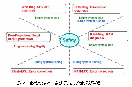 作為新能源汽車的核心部件。電機控制不僅關系著整車性能還與行車安全息息相關。在富士通的電機控制MCU設計中充分考慮了安全特性,通過6大安全機制來保證系統(tǒng)運行的安全可靠,包括:在系統(tǒng)啟動前進行MCU的自我診斷、總線自診斷、RAM的自診斷;程序非法運行時非法輸出端口保護;系統(tǒng)運行期間進行總線診斷、RAM錯誤糾正、閃存錯誤糾正。據(jù)透露,富士通在未來的產品計劃中,還將增加核心MCU的冗余設計(例如雙核或多核)以實現(xiàn)更強的系統(tǒng)保護。