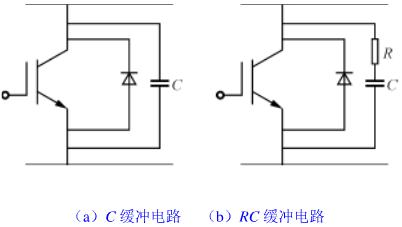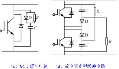 (2)RC緩沖電路如圖4(b)所示,其特點(diǎn)是適合于斬波電路,但在使用大容量IGBT時,必須使緩沖電阻值增大,否則,開通時集電極電流過大,使IGBT功能受到一定限制。
