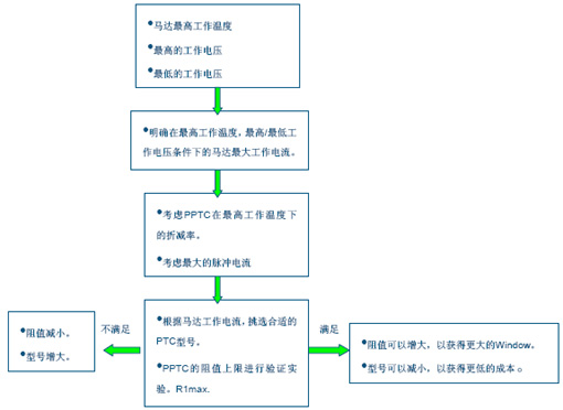 最后確認PPTC的物理參數(shù),比如PPTC的封裝尺寸,PPTC是安裝在控制板上還是安裝在馬達內(nèi)等。