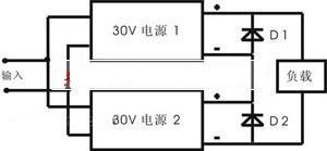 220V交流電壓經(jīng)整流和濾波后得到320V左右的直流電壓,加至電源模塊輸入端。單DC-DC模塊的最高輸出電壓一般為+48V,要得到+60V的直流輸出電壓,必須采用模塊串聯(lián)的方法得到。設(shè)計(jì)采用兩塊PH600S280-28 DC-DC模塊(調(diào)至+30V輸出),通過(guò)串聯(lián)得到+60V的輸出電壓,如圖1所示。
