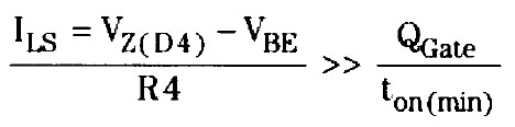 電容C4和二極管D3對(duì)驅(qū)動(dòng)電路的功能至關(guān)重要。通過(guò)選擇電阻R5來(lái)將12V柵極驅(qū)動(dòng)電平設(shè)置在整流器輸出電壓以下。二極管D3將電容C4限定在這一電平。特別是,當(dāng)U1的開(kāi)關(guān)引腳輸出一個(gè)低信號(hào)來(lái)開(kāi)啟功率FET時(shí),信號(hào)被電平位移到Q3的基極。晶體管Q3開(kāi)啟,并快速地將Q4的柵—源電容CGS充電至 12V。如果沒(méi)有C4和D3的話(huà),關(guān)閉Q4會(huì)讓Q3成為一種漏極接地的昂貴的高壓雙極型晶體管。當(dāng)U1的開(kāi)關(guān)引腳輸出一個(gè)高信號(hào)來(lái)關(guān)閉功率FET時(shí),該信號(hào)被電平位移至Q2的基極。Q2開(kāi)啟,有效地將Q4的柵極與輸入電壓連接。在沒(méi)有起到本地電源作用的電容C4的情況下,晶體管Q2和Q3無(wú)法提供快速(且因此而高效地)上拉或下拉Q4柵極電容所必需的快速電流峰值,注意到這一點(diǎn)很重要。另外,由R4設(shè)定的電平位移器電流ILS必須足夠高,以在ton(min) 期間移動(dòng)Q4的柵極電荷QGate。也就是說(shuō):