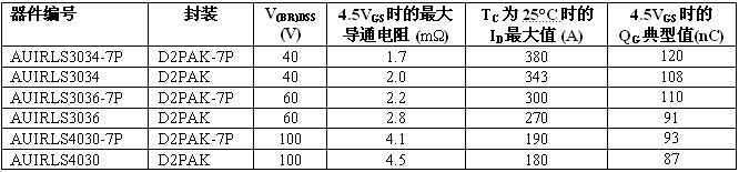 全新溝道 HEXFET 功率 MOSFET 系列采用多款表面貼裝器件 (SMD) 封裝,電壓范圍從 40V 至 200V。標(biāo)準(zhǔn)和邏輯電平柵級驅(qū)動 MOSFET 都為 IR 車用塑料封裝 MOSFET 產(chǎn)品系列設(shè)定了導(dǎo)通電阻性能新標(biāo)準(zhǔn)?;鶞?zhǔn)導(dǎo)通電阻在 40V 下最大為 1.25 毫歐,60V 下最大為2.1 毫歐,75V 下為 2.6 毫歐,100V 下為 4.0 毫歐。在 D2Pak-7P 封裝中許多器件的最大額定電流達 240A。