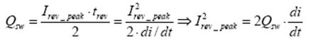 要計(jì)算MOSFET關(guān)斷過程中的開關(guān)損耗,必須首先確定反向電流峰值Irev_peak: