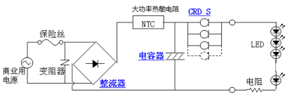 采用恒流二極管作為LED的恒流驅(qū)動具有結(jié)構(gòu)簡單,成本低廉的優(yōu)點(diǎn)。尤其適合于小功率市電LED燈具,如球泡燈和日光燈和吸頂燈。但是由于受到功耗的限制,它只能用于高壓小電流的情況。負(fù)載只能是多個小功率LED的串聯(lián)或是采用集成的“高壓LED”。而且,如果直接采用交流整流,電容濾波的方案,會有功率因素不高的缺點(diǎn),而必須采用無源功率因素補(bǔ)償?shù)姆桨?。這些都是在使用時需要考慮的。
