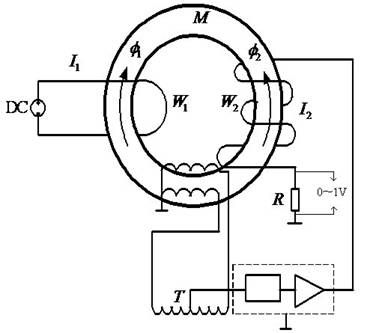采用磁性比較方法,M為高導磁率材料鐵芯,、為比例繞組,、分別提供給、直流電流。得到的直流磁勢分別為, ,由于兩個磁勢和方向相反,當時,即鐵芯內(nèi)合成磁通為零時,磁勢平衡方程為,且當時,.上述說明,即使是一個數(shù)值較大的單個電流,只要有足夠的匝數(shù),便可以用較小的與之平衡,并可用表示相應的數(shù)值,數(shù)值較小,便于直接進行精密測量,且為常量不受其他量的影響,因此用磁性比較方法測量直流大電流可以達到較高的精度。同樣風速、太陽輻射量等信號的測量選用與光伏發(fā)電系統(tǒng)相配套傳感器和變換器將信號其轉(zhuǎn)換為標準電信號才能送入數(shù)據(jù)調(diào)理單元。