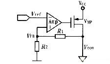 間接閉環(huán)控制環(huán)路如圖1所示,該控制環(huán)路包括一個誤差放大器,反饋環(huán)路和調整管(VMP管)。工作原理是由誤差放大器將輸出反饋電壓VFB與參考電壓Vref進行比較,并放大其差值(Vref-VFB)以此來控制調整管(VMP)的導通狀態(tài),實現負反饋,從而得到穩(wěn)定的輸出Vcon。電路剛啟動時,反饋電壓VFB很低,如果穩(wěn)壓器啟動時產生較大的電容(或者負載電容很大)或VMP管導通時有較小的電阻,浪涌電流(即流過VMP管的瞬間電流)就會很大,有時會接近穩(wěn)壓器的電流限值。因此,必須在誤差放大器中設計軟啟動電路,以保證整個電路在上電后進入正常的直流偏置狀態(tài),不會產生浪涌電流。