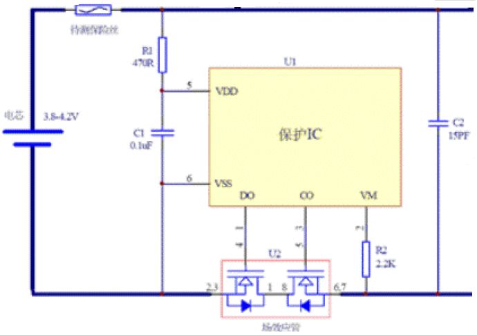 圖1 單節(jié)鋰電池保護(hù)板電路圖