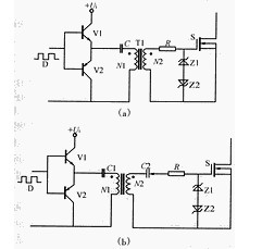 ②該電路只需一個(gè)電源,即為單電源工作。隔直電容C的作用可以在關(guān)斷所驅(qū)動(dòng)的管子時(shí)提供一個(gè)負(fù)壓,從而加速了功率管的關(guān)斷,且有較高的抗干擾能力。