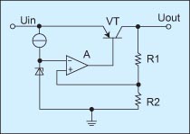 取樣電壓加在比較器A的同相輸入端,與加在反相輸入端的基準(zhǔn)電壓Uref相比較,兩者的差值經(jīng)放大器A放大后,控制串聯(lián)調(diào)整管的壓降,從而穩(wěn)定輸出電壓。當(dāng)輸出電壓Uout降低時(shí),基準(zhǔn)電壓與取樣電壓的差值增加,比較放大器輸出的驅(qū)動(dòng)電流增加,串聯(lián)調(diào)整管壓降減小,從而使輸出電壓升高。相反,若輸出電壓Uout超過(guò)所需要的設(shè)定值,比較放大器輸出的前驅(qū)動(dòng)電流減小,從而使輸出電壓降低。供電過(guò)程中,輸出電壓校正連續(xù)進(jìn)行,調(diào)整時(shí)間只受比較放大器和輸出晶體管回路反應(yīng)速度的限制。