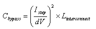 首先,估計電源和負載之間的互連電感和電阻的大小。這種互連阻抗(LINTERCONNECT) 形成一個旁路電容器 (CBYPASS) 低通濾波器。我們假設(shè)電源輸出阻抗較低。利用該低通濾波器的特性阻抗 (ZO)、負載步進值 (ISTEP) 和允許電壓波動(dV),建立旁路濾波器要求(方程式1-2):