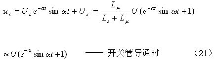 我們從(21)式以及圖3和圖4可以看出:當(dāng)電源開關(guān)管Q1導(dǎo)通時,分布電容Cs兩端電壓(也是勵磁電感l(wèi)v兩端的電壓),由一個最大振幅約等于輸入電壓U的正弦振蕩電壓與一個分布電容Cs兩端電壓的半波平均值