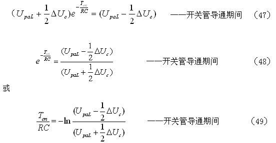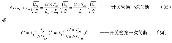 的值可根據(jù)(41)式求得。在使用(48)和(49)式之前,還需要先利用(33)和(34)式或(35)和(36)式計(jì)算出電容器C的容量,以及根據(jù)開(kāi)關(guān)管的最大耐壓BVm定義好電容器C吸收尖峰脈沖電壓增量