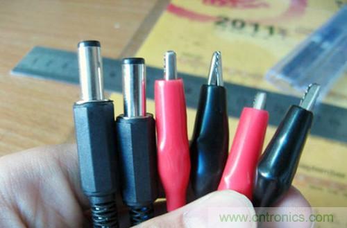 焊接好鱷魚(yú)夾。注意先把外面的紅/黑色橡膠套套在線上。