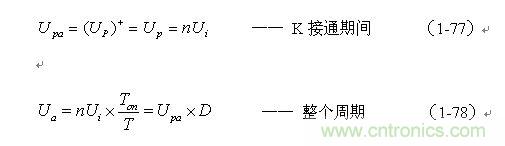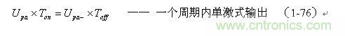 (1-76)式就是計(jì)算單激式變壓器開(kāi)關(guān)電源輸出電壓的表達(dá)式。式中,Upa和Upa-分別稱為單激式變壓器開(kāi)關(guān)電源輸出電壓的正半波平均值和負(fù)半波平均值。